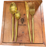 Each vessel shines with a golden hue that elevates every meal with luxury and warmth.
